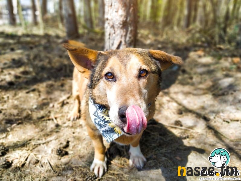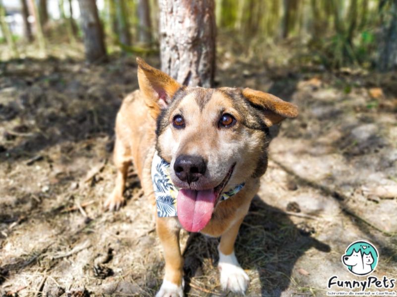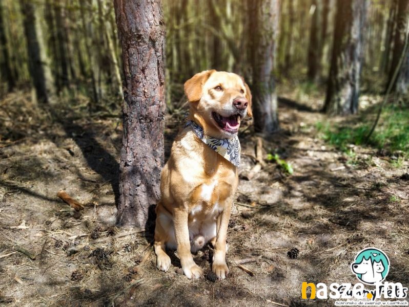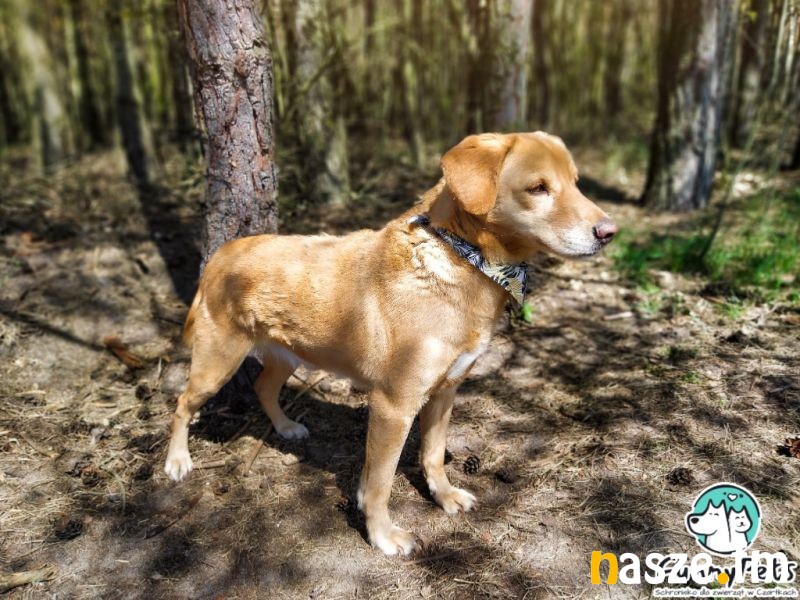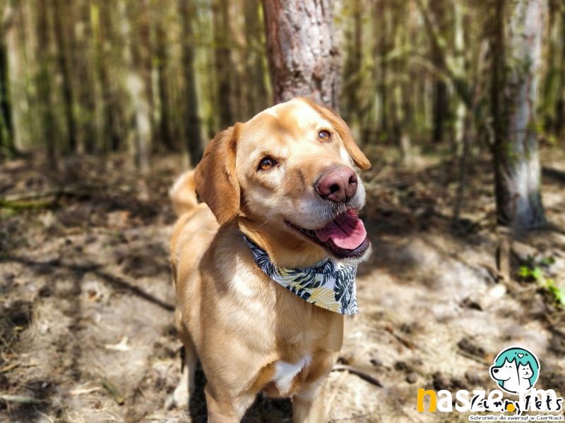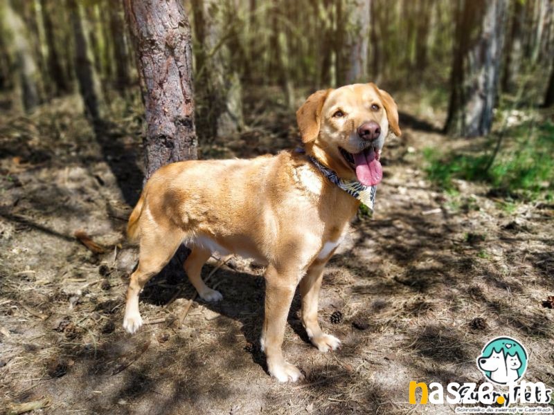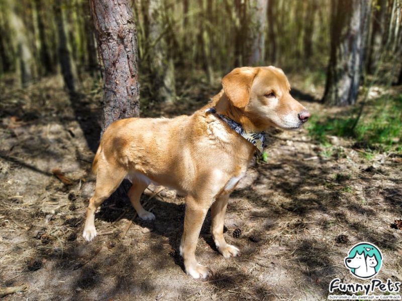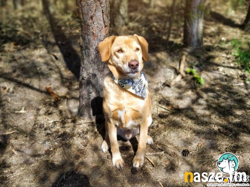 Kolejnym przystojniakiem tego odcinka jest Goldi. To psiak, który nie odnajduje się w kojcu, zwyczajnie mu się nudzi i potrzebuje towarzystwa swoich opiekunów! To typ energicznego i żywiołowego psa, który musi mieć zajęcie. Uwielbia wszelkie aktywności, będzie cudownym kompanem do biegania, wycieczek, czy długich, intensywnych spacerów, na których będzie mógł się porządnie zmęczyć. Jest nauczony chodzenia na smyczy, ale niestety potrafi na niej szarpnąć, to coś, co będzie trzeba z nim wypracować. Ma pozytywny stosunek do dzieci, ale powinny być one nieco starsze, najlepiej w wieku szkolnym, bo to typ psiaka, który jak już pozna człowieka, staje się mocno wylewny w uczuciach, przez co bywa mało delikatny i maluchowi może niechcący zrobić krzywdę. Goldi jest ciekawy świata, interesuje go wszystko dookoła, lubi węszyć, jest przefajny i bardzo radosny.