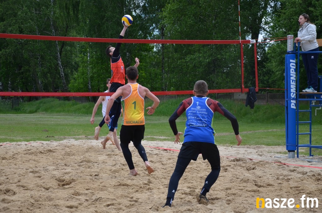 W pierwszym tegorocznym turnieju siatkówki plażowej organizowanym przez MOSiR Sieradz wystartowało 9 par z: Radomska, Przedborza, Bełchatowa, Wielunia i Sieradza. Po zaciętym finale para Konrad Pałyga/Daniel Kaczmarek pokonała braci Białków - Daniela i Tomasza 2:1. Trzecie miejsce zajęła para Sylwester Kukulski/Kamil Nowicki, która w decydującym meczu pokonała Pawła Jakóbczyka i Jarosława Pytkę 2:0. Cztery najlepsze pary niedzielnego turnieju otrzymały pamiątkowe statuetki i nagrody rzeczowe.