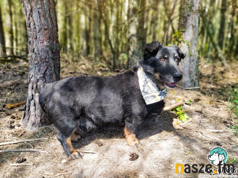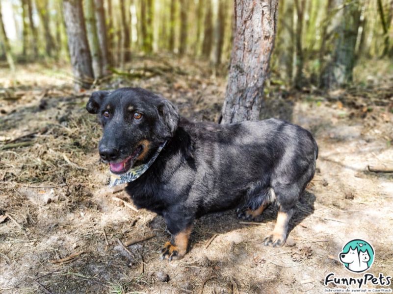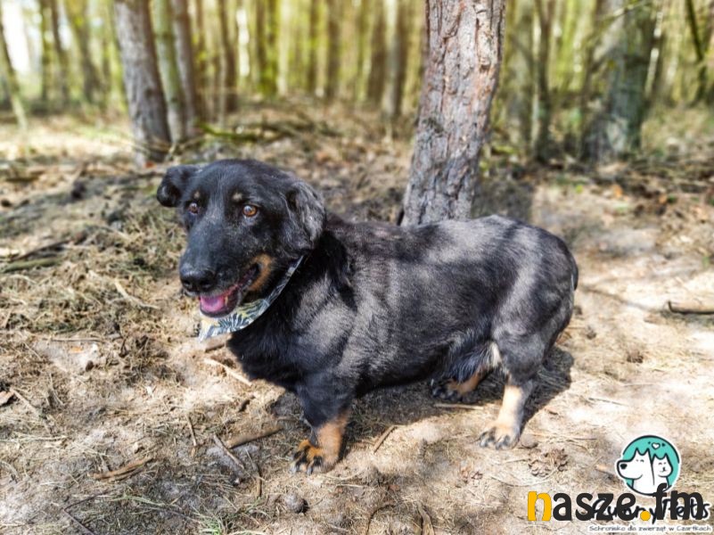 Może dziś los uśmiechnie się także do Kuksa? To bardzo sympatyczny i przyjacielski psiak, z początku nie jest mocno wylewny w uczuciach, potrzebuje chwili na poznanie człowieka. Nie jest natarczywy, czeka na inicjatywę opiekuna, sam nie do końca potrafi domagać się uwagi i bliskości, choć widać, że głaski to coś co uwielbia. Nie jest wulkanem energii, to ten typ psa, któremu najwięcej radości sprawi wspólne wylegiwanie się na kanapie, co nie oznacza, że raz na jakiś czas dłuższa wycieczka go nie ucieszy, na co dzień jednak nie potrzebuje specjalnie dużo ruchu, krótkie, mniej intensywne spacery w zupełności mu wystarczą. Świetnie radzi sobie na smyczy, drepcze spokojnym tempem. Bez problemu dogaduje się z psiakami swojej wielkości i mniejszymi, ale generalnie z żadnym nie powinno być zgrzytów, nie bywa zaczepny, raczej żyje swoim życiem i nie wdaje się w konflikty, a uwagę skupia na człowieku. Odnajdzie się zarówno w domu z ogrodem, jak i w mieszkaniu, ale ze względu na jego masę i krótkie nóżki, powinno się ono znajdować na niższym piętrze.