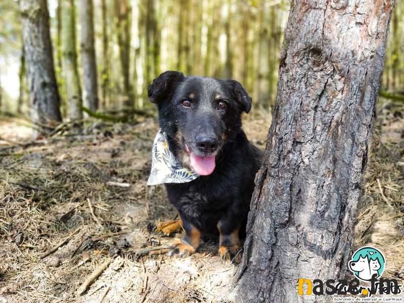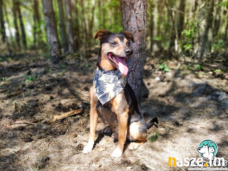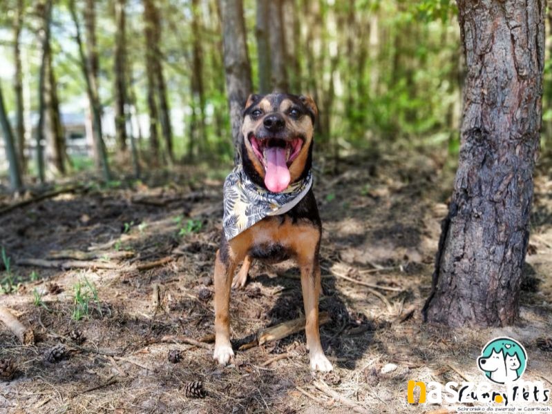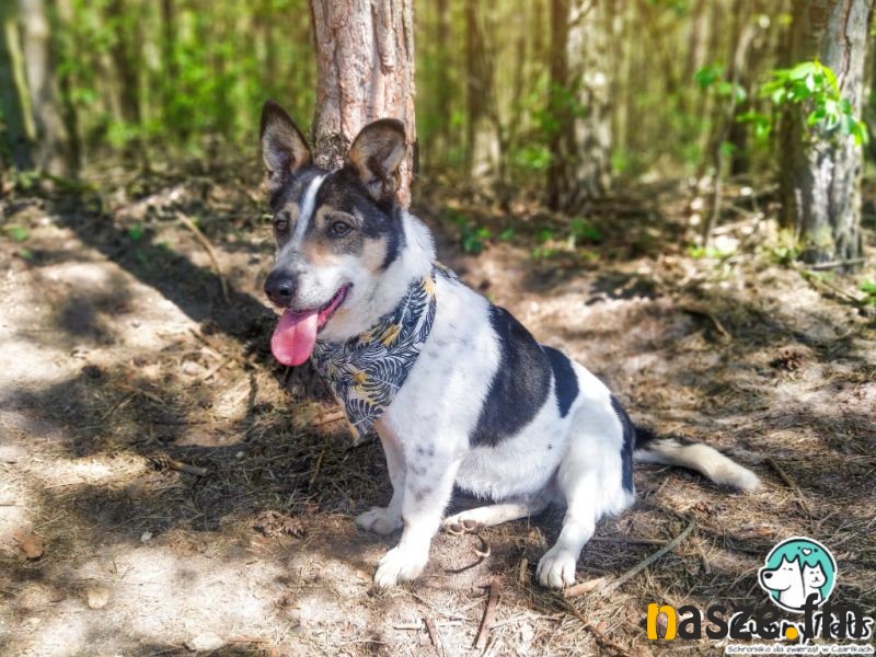Na własny kąt liczy także Ziomek. To psiak, który ma masę energii i temperamentu, jest żywiołowy i uwielbia mieć zajęcie, nie lubi nudy, dlatego świetnie odnajdzie się w aktywnej rodzinie. Z początku może wydawać się mało kontaktowy, ale jest to spowodowane ekscytacją ze spaceru i tym, że interesuje go wszystko dookoła, kiedy poświęci mu się trochę czasu, chętnie się zaprzyjaźnia i domaga bliskości, jest fanem głasków i rozdawania buziaków. Potrafi chodzić na smyczy, choć zdarza mu się plątać, kwestia regularnych spacerów. Dobrze dogaduje się z innymi psami, jeżeli zaczepia to raczej do zabawy, aktualnie w kojcu mieszka z kumplem swojej wielkości i nie ma między nimi żadnych problemów. To mega pozytywny, otwarty na ludzi, towarzyski psiak, który do każdego domu wniesie dużo radości i szczęścia. Fajnie odnajdzie się w domu z dostępem do ogrodu, ale przy odpowiedniej dawce ruchu powinien przystosować się także do mieszkania. Może zamieszkać z dziećmi, jest łagodny i uwielbia każdego człowieka.