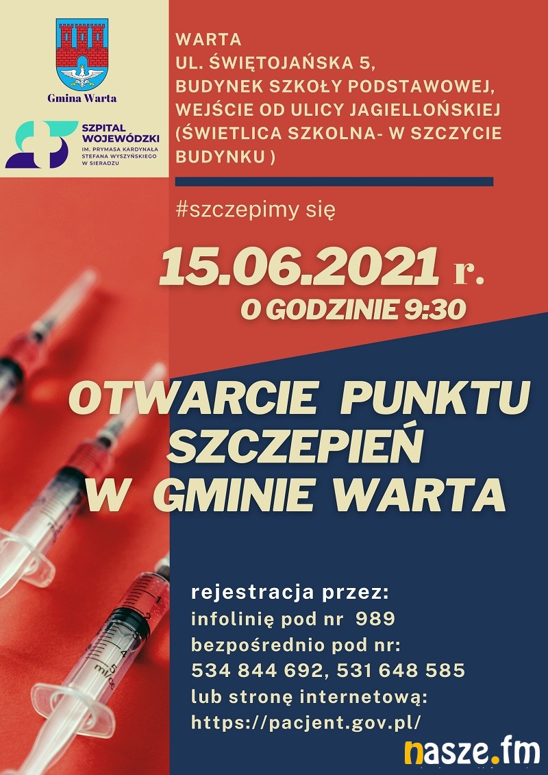 Urząd Miejski w Warcie wspólnie ze Szpitalem Wojewódzkim w Sieradzu otworzył dzisiaj Punkt Szczepień w Szkole Podstawowej przy ul. Świętojańskiej w Warcie.