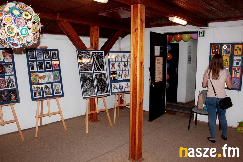 - Prace pokazują różne techniki, jakimi posługujemy się na zajęciach, a więc: rysunek, malarstwo, grafiki (linoryt, sucha igła, monotypia). Ponadto plansze zostały podzielone na tematy realizowane w naszej Placówce. W większości były one wykonane pod kątem konkursów, w których chętnie uczestniczyliśmy odnosząc liczne sukcesy. Wśród tematów konkursowych znalazły się: portret, martwa natura, moja przygoda w muzeum, kot, człowiek w ruchu. Zobaczyć można również prace Nasze poszukiwania- eksperymenty i plastyczne zabawy np. z plamą barwną, kreską. Zachęcamy do obejrzenia naszych dokonań. Na wystawie pokazano prace zarówno wychowanków obecnie uczestniczących w zajęciach ale także uczestników z lat ubiegłych.