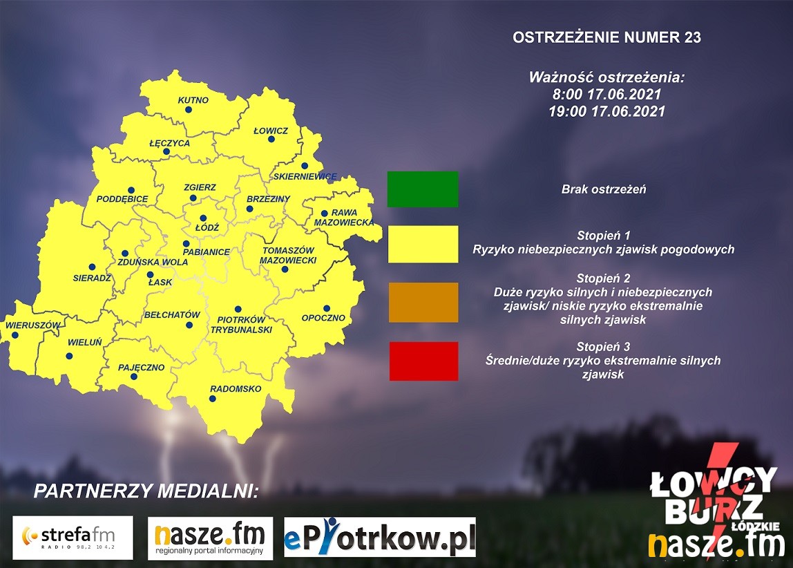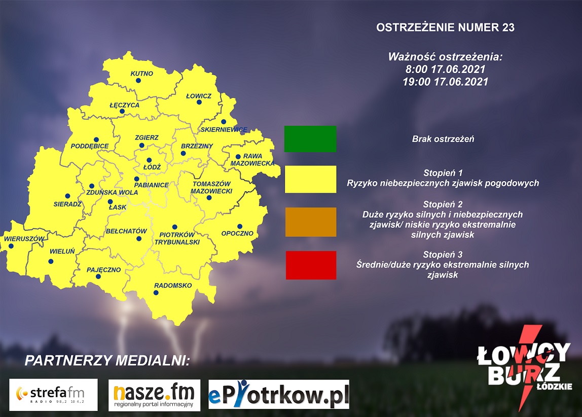 Ostrzeżenie wydali też Łowcy Burz Łódzkie.