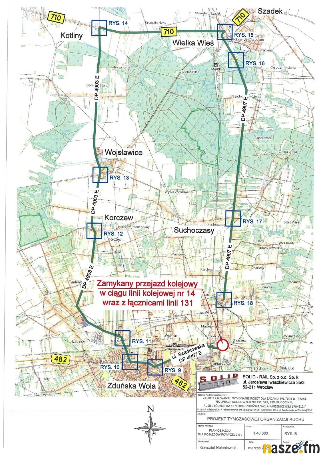 Dla pojazdów o masie do 3,5 tony objazd zostanie wyznaczony ul. Torową, natomiast dla ciężarówek przez drogę wojewódzką nr 710.
