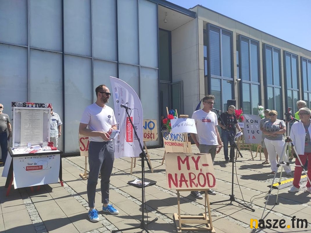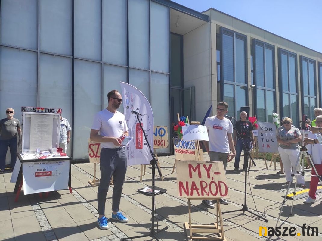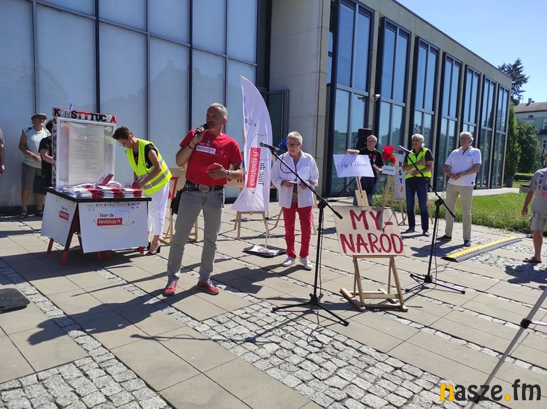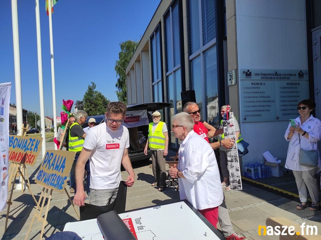 Tour de Konstytucja PL - akcja popularyzująca zapisy Konstytucji zawitała do Zduńskiej Woli. Na pl. Wolności pojawili się m. in. sędzia Igor Tuleya, mecenas Zbigniew Bakalarczyk i Robert Hojda prezes KORD.