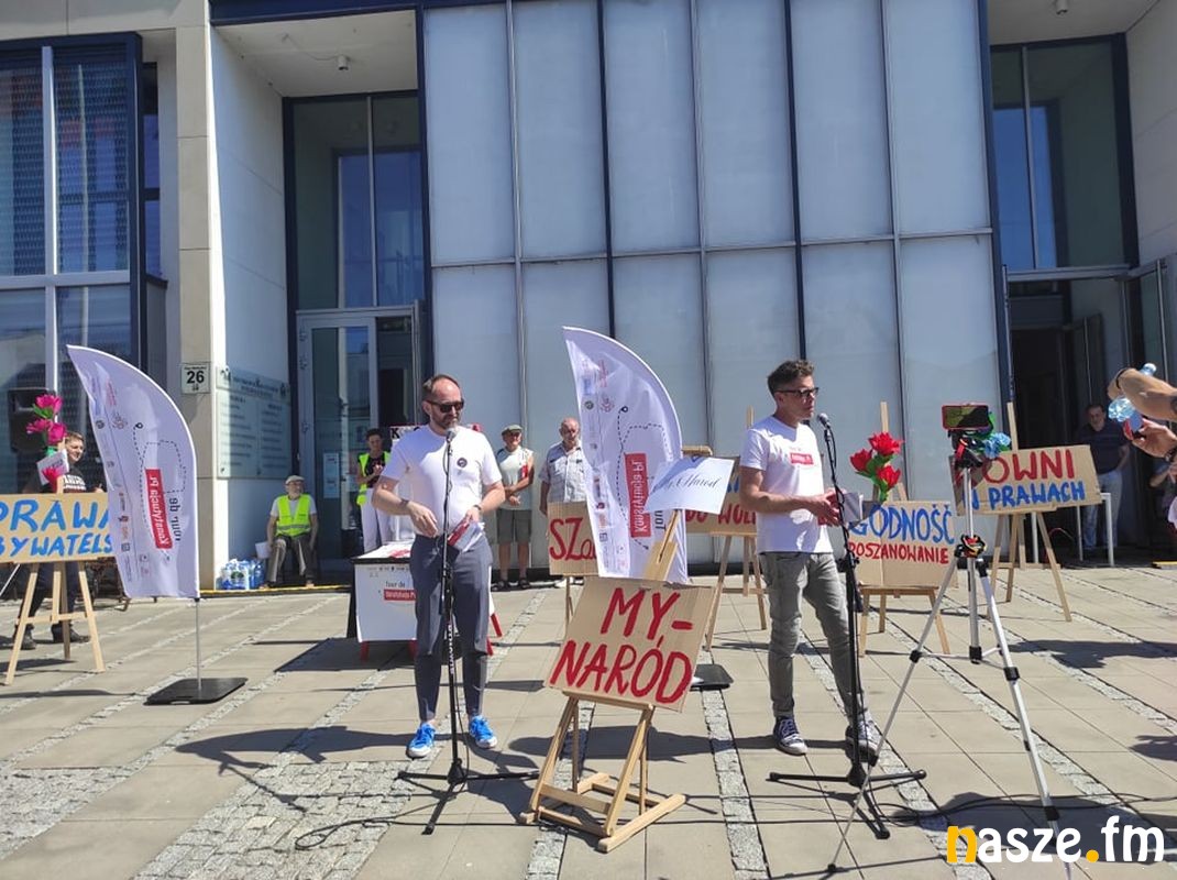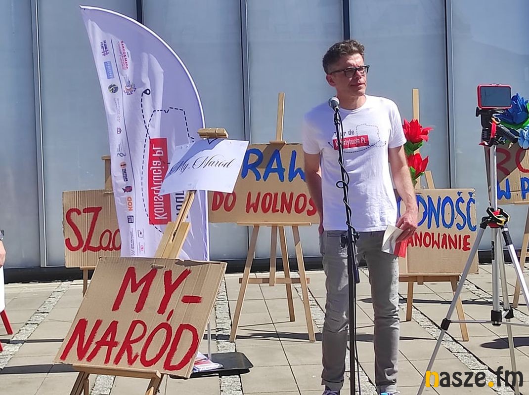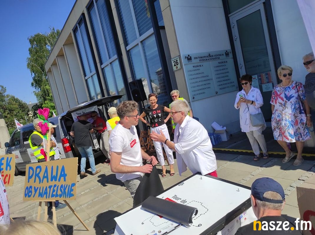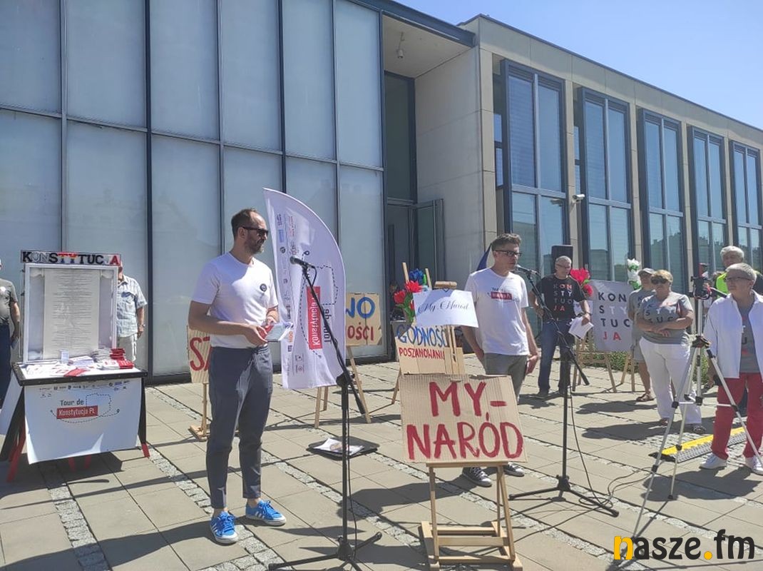 Tour de Konstytucja PL - akcja popularyzująca zapisy Konstytucji zawitała do Zduńskiej Woli. Na pl. Wolności pojawili się m. in. sędzia Igor Tuleya, mecenas Zbigniew Bakalarczyk i Robert Hojda prezes KORD.