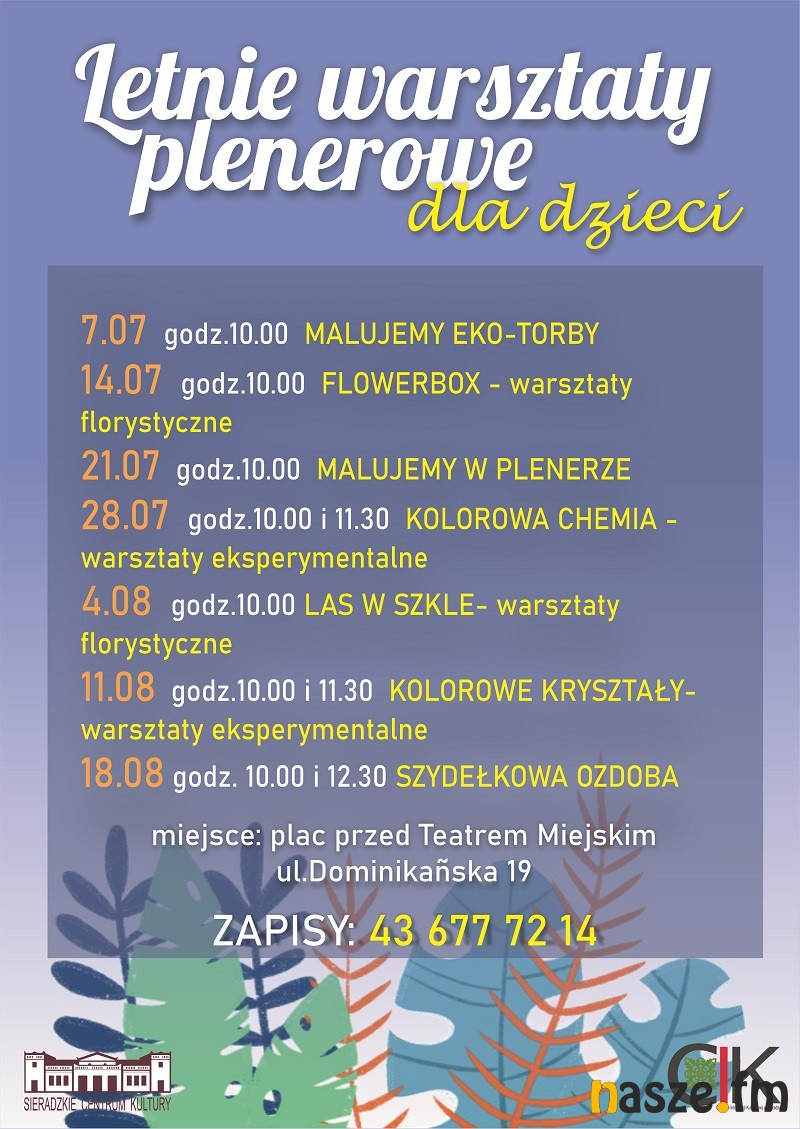 Warsztaty będą w każdą środę od lipca do sierpnia (oprócz 25 sierpnia)