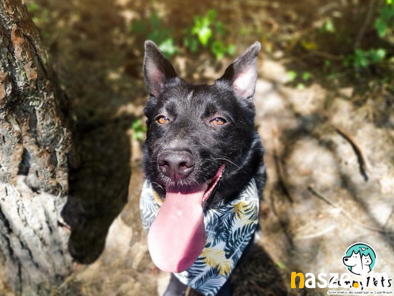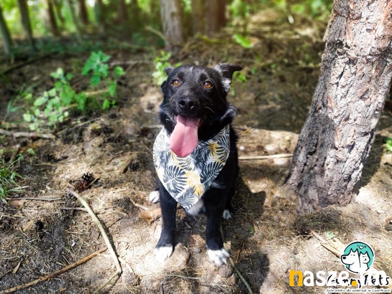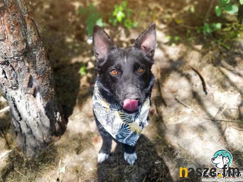 Na koniec - Merlin. W pierwszym kontakcie jest nieco nieśmiały, trzeba zachęcać go do wyjścia z kojca, przy bliższym poznaniu, jak wyczuje dobre intencję, bardzo się otwiera, siada blisko opiekuna, przytula się, domaga miziania. Potrafi chodzić na smyczy, stara się trzymać tempo człowieka, jest aktywny, ma spory zapas energii i z pewnością będzie świetnym kompanem dłuższych wycieczek. Jest chętny do spacerowania, lubi węszyć, obserwować wszystko, co dzieje się dookoła. Bez problemu dogaduje się z psiakami swojej wielkości, tych dużo większych od siebie trochę się boi. Jest miłym, łagodnym i niesamowicie sympatycznym psem, któremu bardzo brakuje człowieka na wyłączność. Powinien dobrze odnaleźć się zarówno w domu z ogrodem, jak i w mieszkaniu.