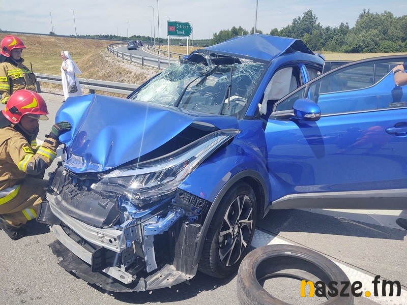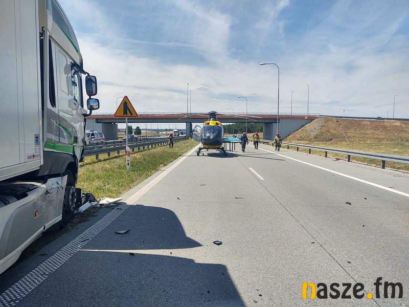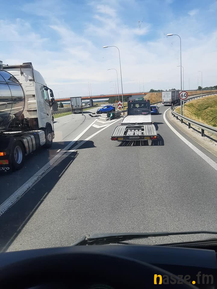 Dzisiaj na wysokości węzła Sieradz Wschód doszło do zderzenia ciężarówki i dwóch samochodów osobowych. Dwie osoby zostały poszkodowane. Droga była przez kilka godzin zablokowana.