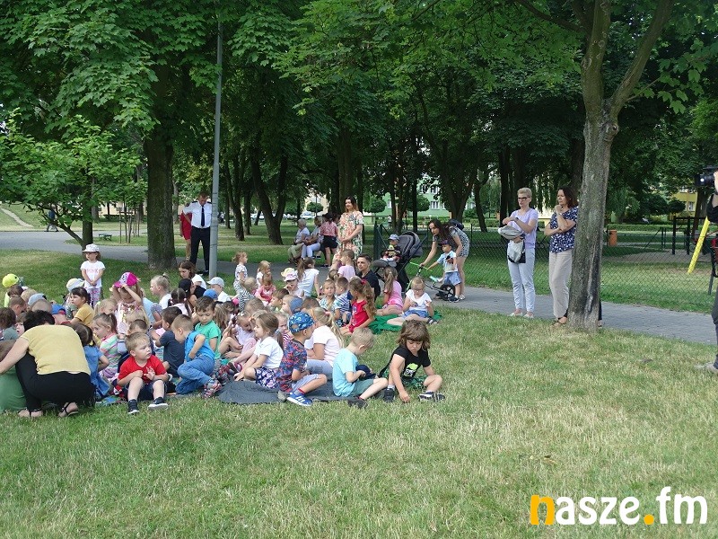 W ramach "Czytania na polanie" do Parku Broniewskiego zaproszono dzieci z sieradzkich przedszkoli. Atrakcyjne wydarzenie przyciągnęło także najmłodszych z pobliskiego placu zabaw. W akcję czytania dzieciom na świeżym powietrzu zaangażowano wiele osób, w tym straż miejską oraz policję, która poprzez zabawę przekazywała najmłodszym wiedzę na temat bezpiecznych wakacji. Na miejscu była też nasza reporterka - Małgorzata Pałka, uczestnicząca w plenerowym czytaniu.