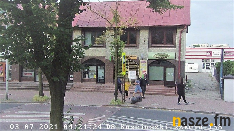 W minioną sobotę ok. godz 4.21 dyżurny Straży Miejskiej W Sieradzu za pomocą kamery znajdującej się na ul. Kościuszki zauważył grupę mężczyzn poruszających się po chodniku w kierunku sieradzkiego ronda. Jeden z mężczyzn nogą kopał kosze uliczne powodując przewrócenie się jednego z ich na ziemię.