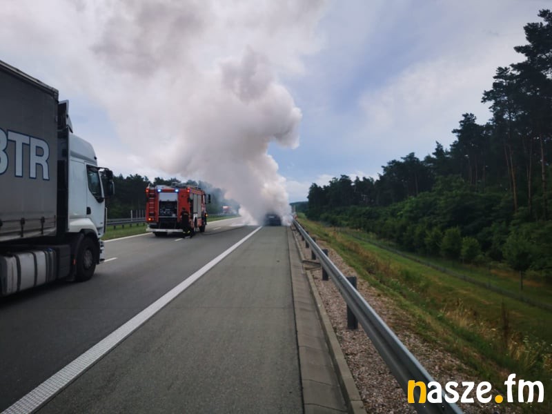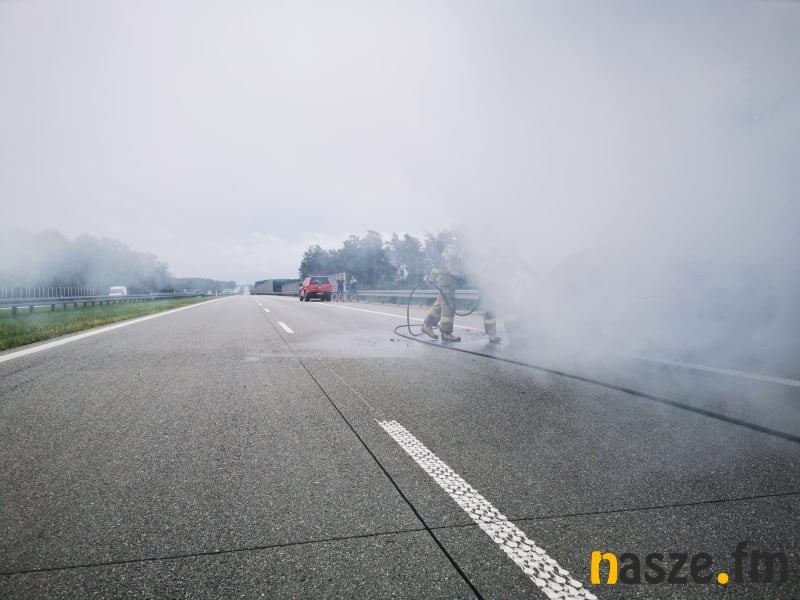 Trasa na czas gaszenia pożaru przez strażaków została na chwilę zablokowana.