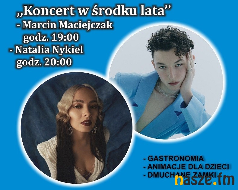 Miejmy nadzieję, że lato będzie dziś łaskawe i pozwoli Natalii Nykiel i Marcinowi Maciejczakowi wystąpić na stadionie MKS Jutrzenka w Warcie. Koncerty wokalistów rozpoczną się o godz. 19:00, wstęp wolny.