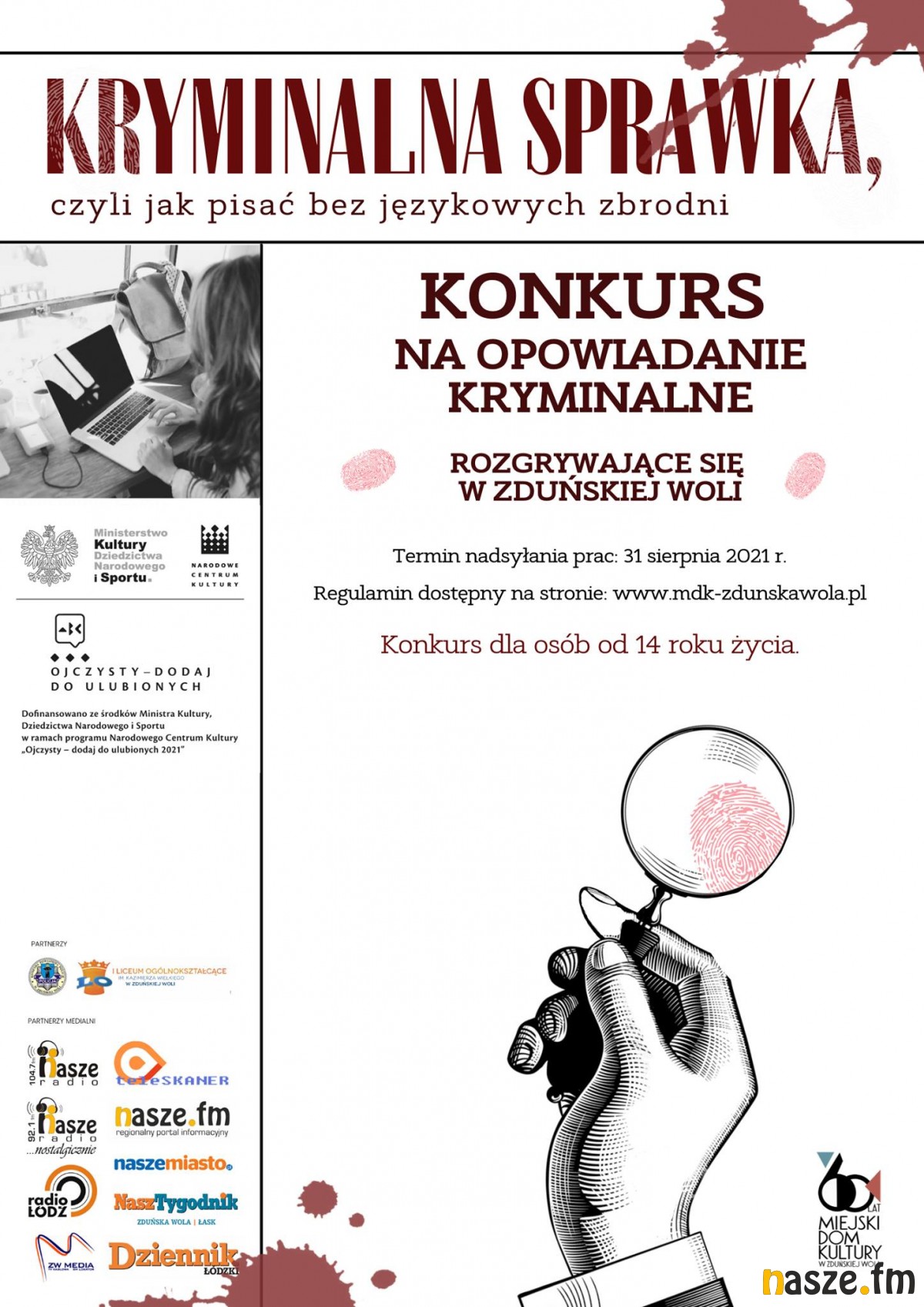 Lubicie historie z dreszczykiem? Lubicie pisać? Miejski Dom Kultury w Zduńskiej Woli zachęca do udziału w konkursie na opowiadanie kryminalne. To w ramach projektu "Kryminalna sprawka, czyli jak pisać bez językowych zbrodni".