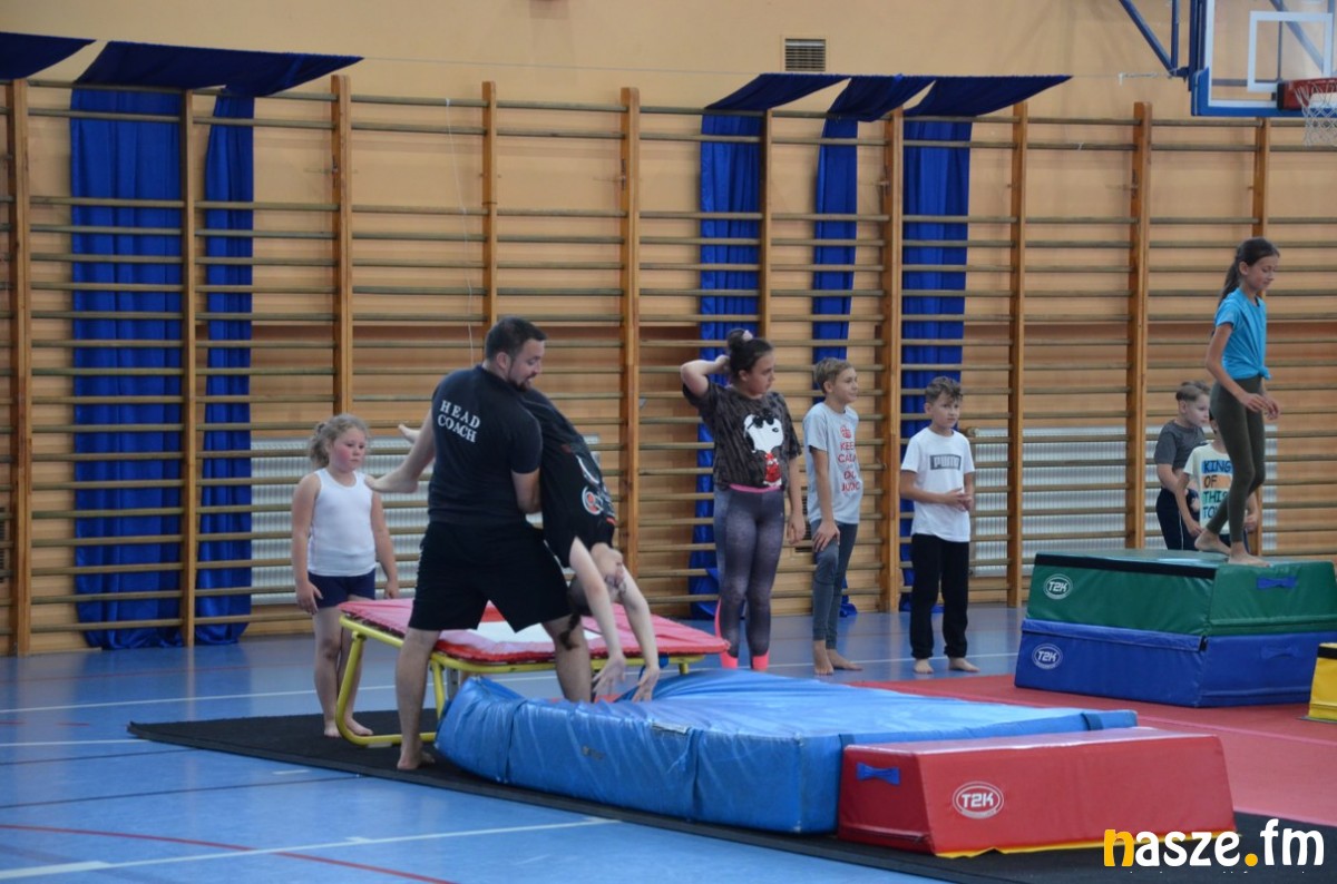 Uczestnicy zajęć mogli się nauczyć przewrotów i salt, a także obejrzeć krótki pokaz w wykonaniu instruktorów. To kolejny raz, gdy zajęcia gimnastyczne zawitały do Sieradza. Rok temu trening z najmłodszymi przeprowadził Leszek Blanik – jedyny w historii Polski mistrz olimpijski w gimnastyce sportowej.