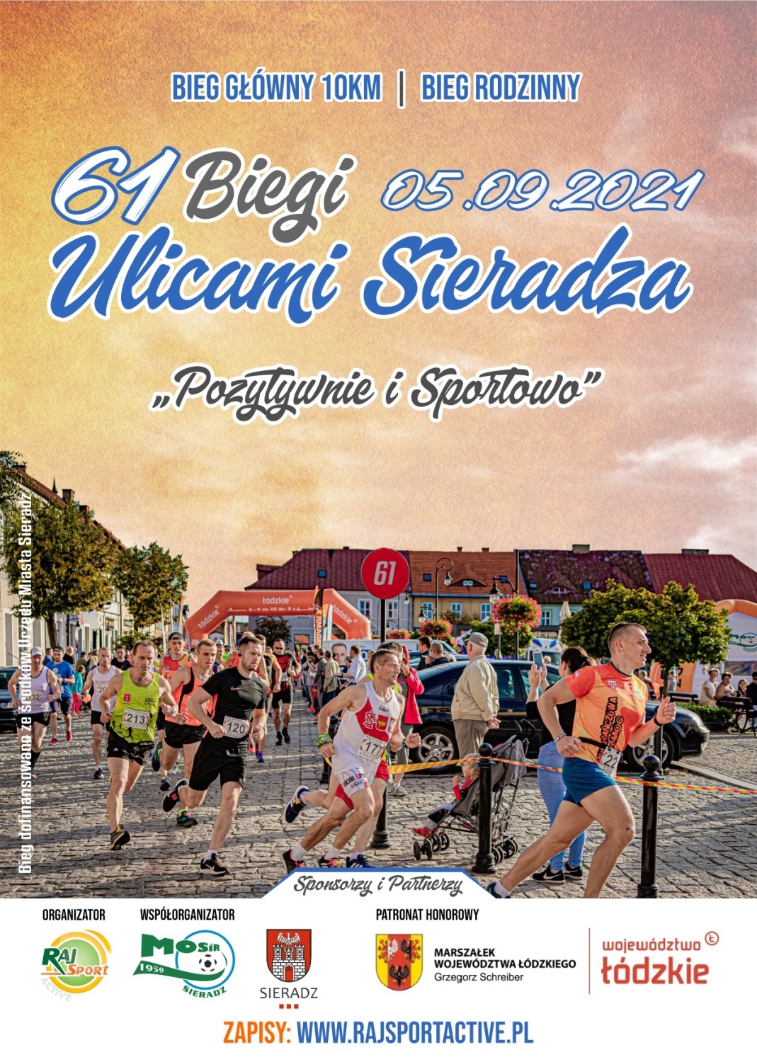Natomiast następny weekend to 61. Biegi Ulicami Sieradza, które wystartują 5 września z sieradzkiego Rynku. Uczestnicy będą mieli do pokonania 10 km trasę atestowaną atestem PZLA. Przed biegiem głównym wystartuje bieg rodzinny. Bieg współfinansowany jest ze środków Urzędu Miasta Sieradz i odbywa się pod patronatem honorowym Marszałka Województwa Łódzkiego Grzegorza Schreibera oraz Prezydenta Miasta Sieradz Pawła Osiewały.