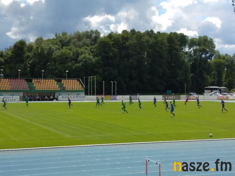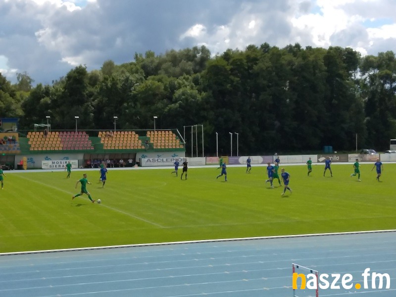 Od samego początku spotkania Biało-Zieloni ruszyli do ataku, jednak worek z bramkami rozwiązał się dopiero w 27. minucie, kiedy bramkarza Sebastiana Ostrowskiego pokonał Piotr Mielczarek. Na drugą bramkę nie trzeba było długo czekać. Już dwie minuty później na listę strzelców wpisał się Wiktor Płaneta. Przed końcem pierwszej połowy gola na 3:0 dołożył jeszcze Sebastian Radzio.