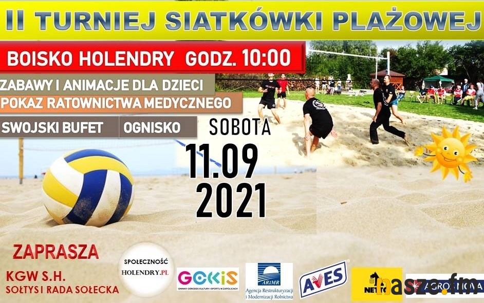 II Turniej Siatkówki Plażowej rozegrany zostanie na boisku w Holendrach, rozpocznie się o godz. 10:00.