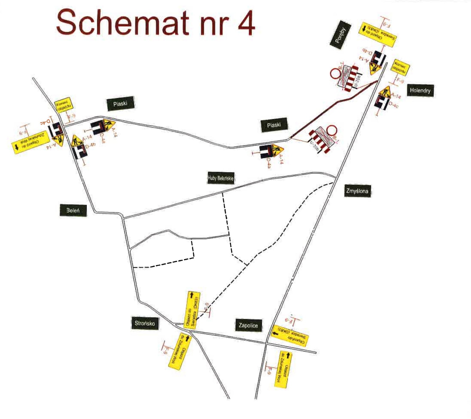 Objazd wytyczono przez Zapolice i Strońsko. Więcej szczegółów na mapce poniżej.