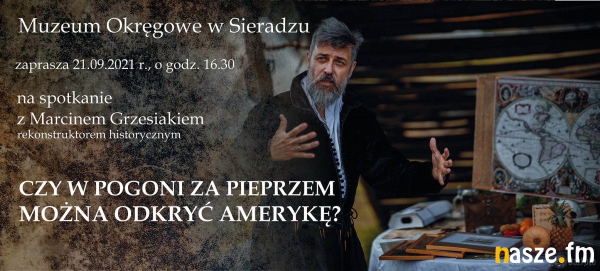 Tematem wtorkowego spotkania w sieradzkim muzeum będą zdobycze epoki odkryć geograficznych, przede wszystkim te, które trafiły ostatecznie na nasze stoły. Jest to opowieść poparta prezentacją, której centralnym elementem jest pieprz, jako trudno dostępna i droga, ale bardzo pożądana przyprawa.