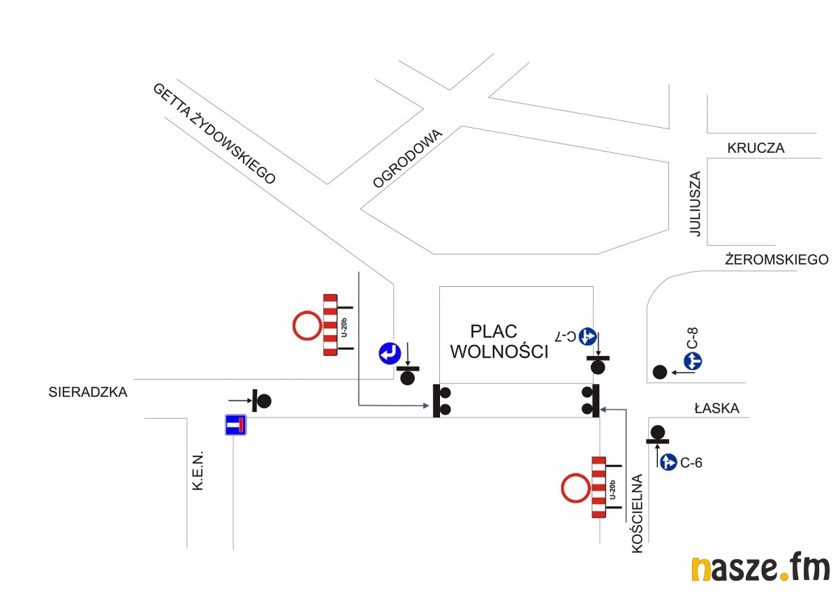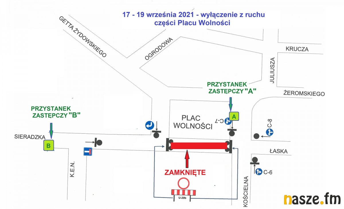 Od dziś od godz. 12:00 do niedzieli do północy zamknięta dla ruchu będzie południowa część placu Wolności od ul. Sieradzkiej do skrzyżowania z ulicami Łaską i Kościelną.
