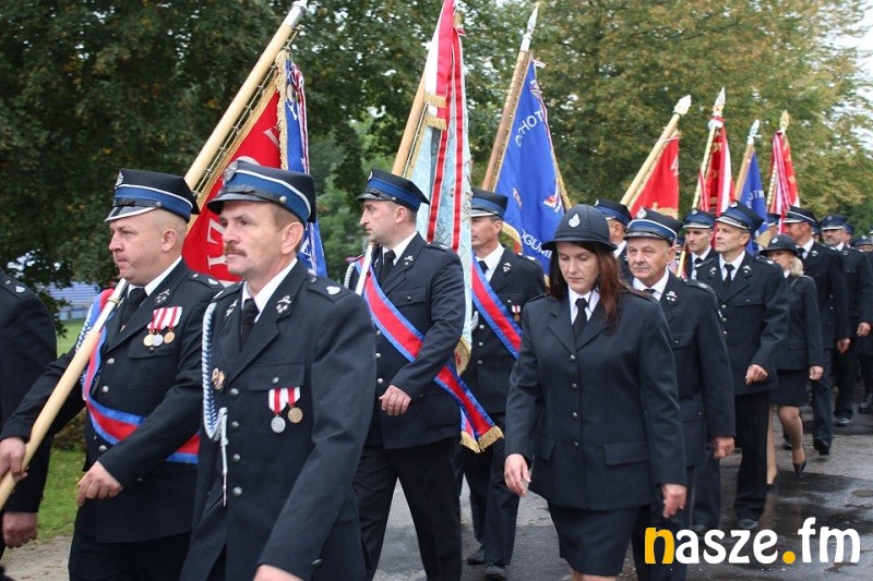 i Dębina. Po mszy w asyście kapeli "Pożarniki" oraz pocztów sztandarowych, uczestnicy przejechali na plac przy Ochotniczej Straży Pożarnej.