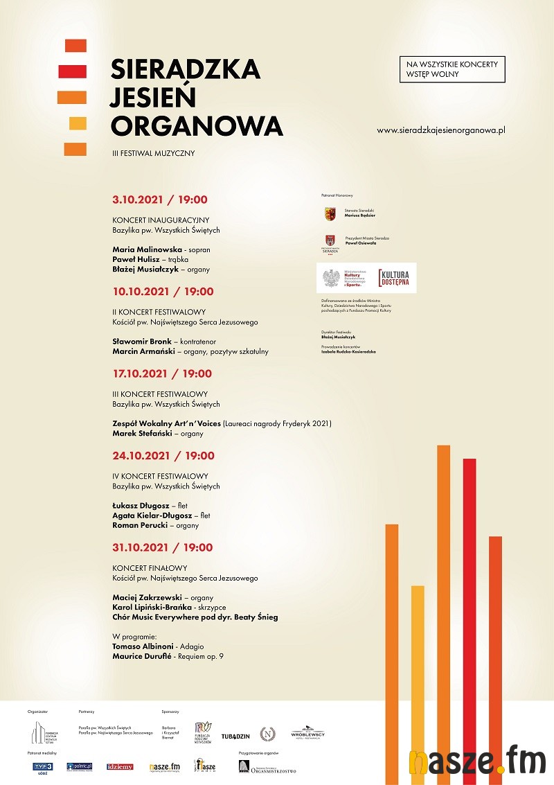 Od kilku tygodni trwa III Festiwal Muzyczny Sieradzka Jesień Organowa. To wydarzenie, które szybko wpisało się w muzyczny krajobraz regionu i Polski. Festiwal łączy w sobie prezentację muzyki organowej, kameralnej i sakralnej, przy udziale najznakomitszych artystów. W najbliższą niedzielę odbędzie się już koncert finałowy.