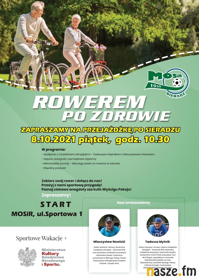 Miejski Ośrodek Sportu i Rekreacji w Sieradzu zaprasza na wyjątkowy rajd rowerowy. 8 października na stadionie MOSiR-u pojawią się medaliści olimpijscy – Mieczysław Nowicki i Tadeusz Mytnik. To okazja nie tylko, by porozmawiać, ale i udać się na wspólną przejażdżkę z legendami polskiego kolarstwa.