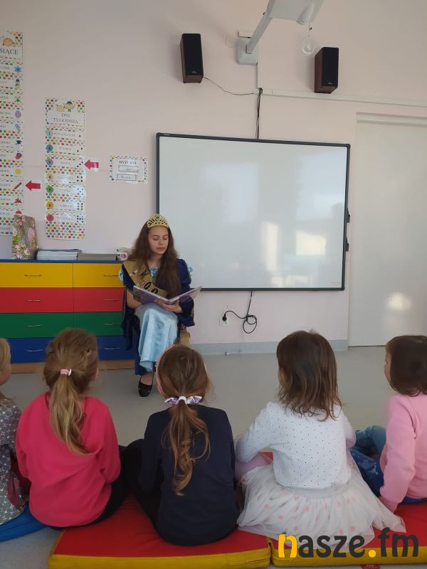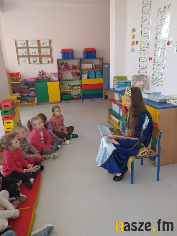 Mając na względzie owe korzyści uczennice klas 8a i 7c, tworzące Koło Przyjaciół Biblioteki, odwiedziły dzieci z klas 0, 2 i 3. Najmłodsi uczniowie szkoły z uwagą wysłuchali baśni czytanej przez Królową Książki, następnie odpowiadały na pytania związane z treścią bajki. Dodatkowo otrzymały słodki poczęstunek, w zamian za pięknie wykonany taniec wokół Królowej, w rytm piosenki o molach książkowych.