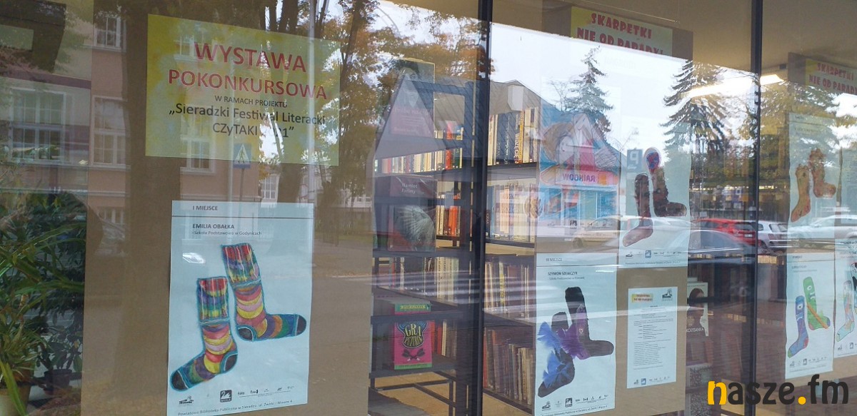 Przechodząc ulicą Żwirki i Wigury w Sieradzu obok Powiatowej Biblioteki Publicznej można podziwiać prace nagrodzone i wyróżnione w konkursie "Skarpetki nie od parady". Prace konkursowe zostały umieszczone w oknach wypożyczalni dla dorosłych.