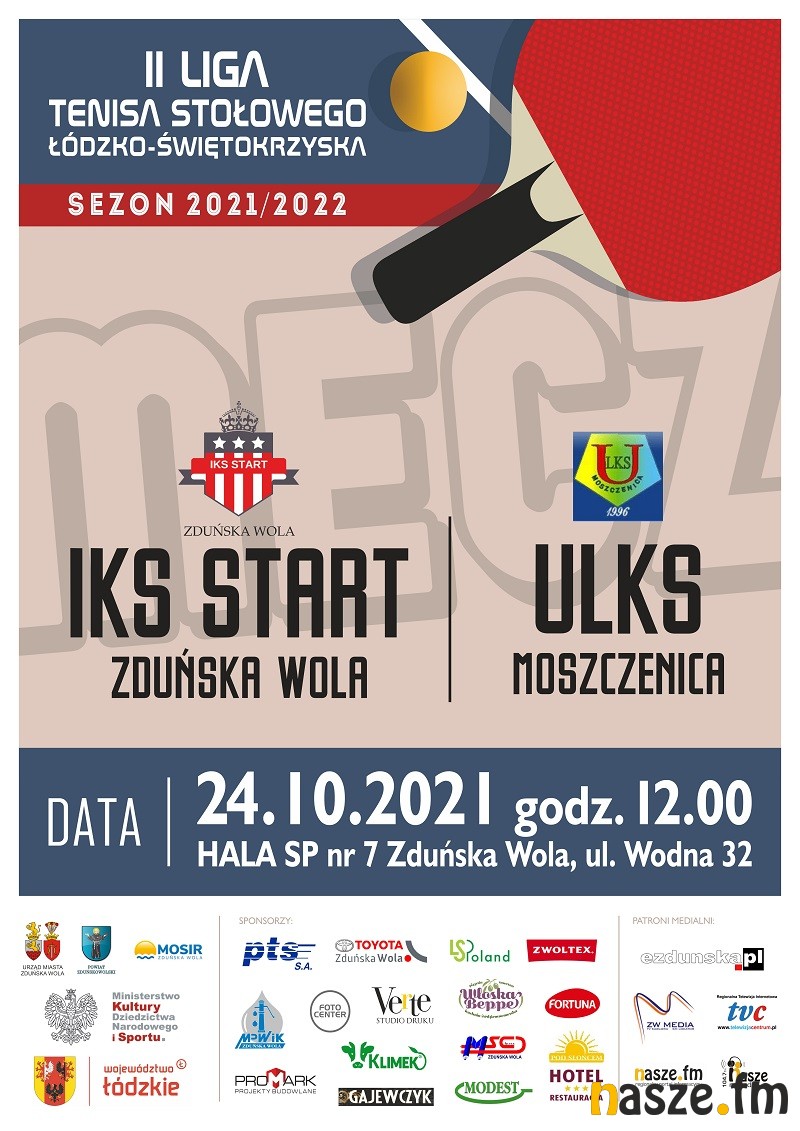 Klub IKS START Zduńska Wola zaprasza kibiców na mecz II ligi tenisa stołowego. W niedzielę w hali Szkoły Podstawowej nr 7 zduńskowolanie zagrają z ULKS-em Moszczenica. Dzień wcześniej czeka ich wyjazdowe starcie z MKS-em Jedynka Łódź.