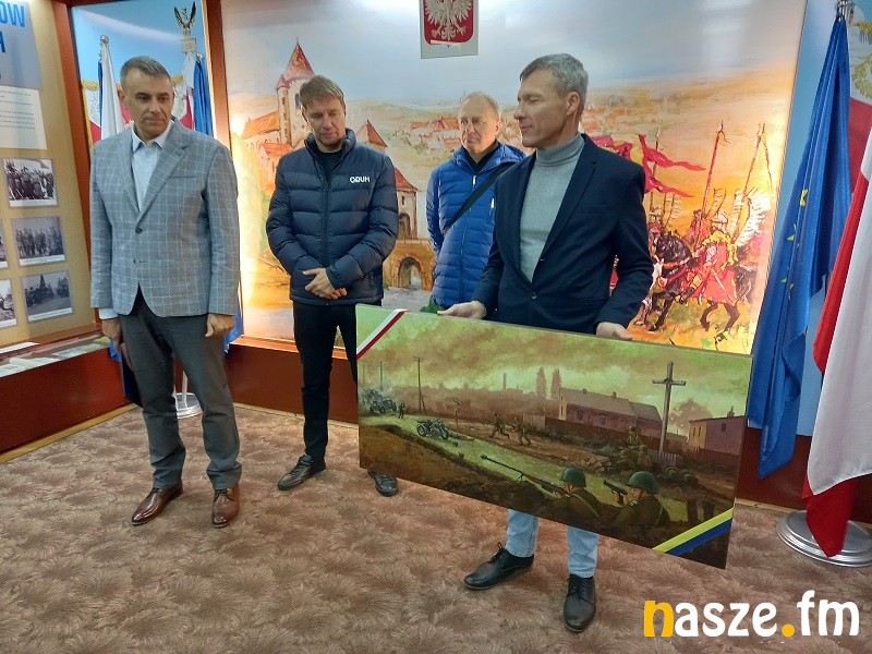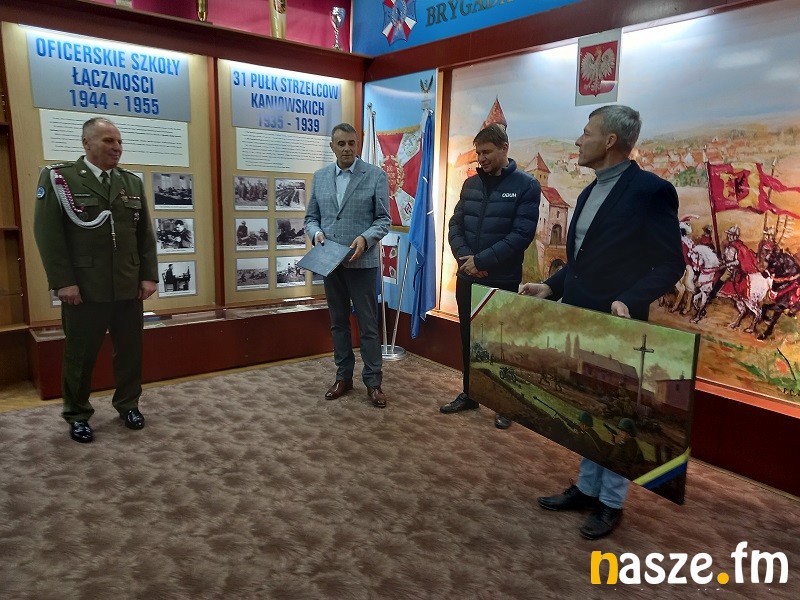 Ciekawy akcent miał też dziś miejsce w sali tradycji brygady. Na ręce płk. W. Daniłowskiego przekazano obraz namalowany przez Cezarego Zbrojewskiego, który pokazuje to, co działo się w Sieradzu 4 września 1939r., gdy na przedmieściach (od strony Złoczewa) doszło do starcia polskich żołnierzy z niemieckimi. To z kolei inicjatywa nieformalnej grupy Detektywów Pól Bitewnych 1939r., która tworzą pasjonaci historii Wojciech Józefiak, Maciej Milak i Robert Kielek. To oni dotarli do żyjących świadków tego wydarzenia i w oparciu o ich relacje określili jak ów obraz powinien wyglądać. Co ciekawe to nie koniec tej historii, bo do tego będą jeszcze dołączone materiały dydaktyczne oraz kilkuminutowy film obrazujący wrześniowy bój w Sieradzu.
