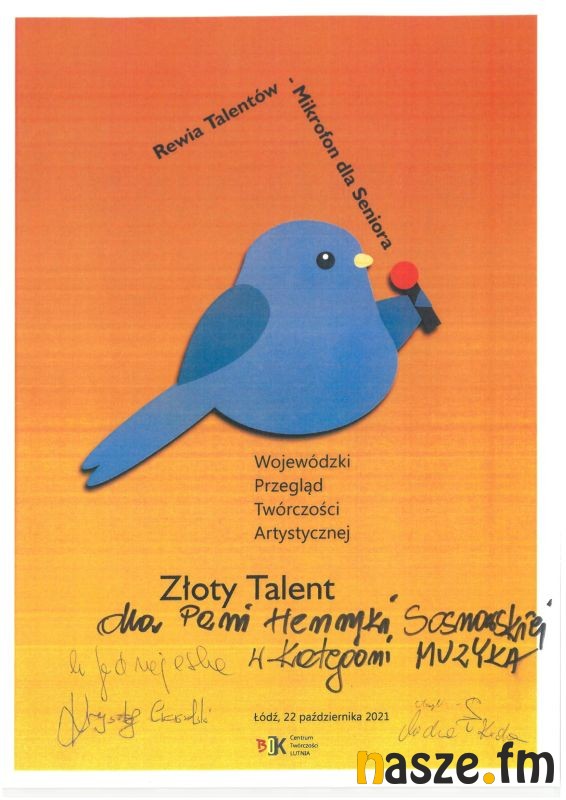 Henryka Sosnowska, słuchaczka Uniwersytetu Trzeciego Wieku w Zduńskiej Woli, zdobyła Złoty Talent w kategorii muzyka w Wojewódzkim Przeglądzie Twórczości Artystycznej "Rewia Talentów - Mikrofon dla Seniora".