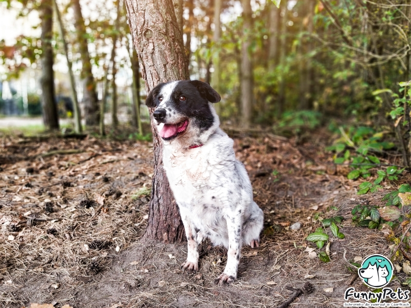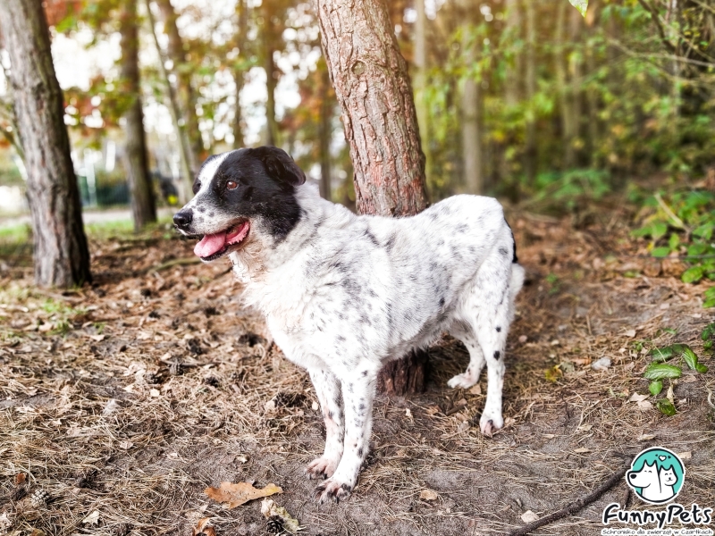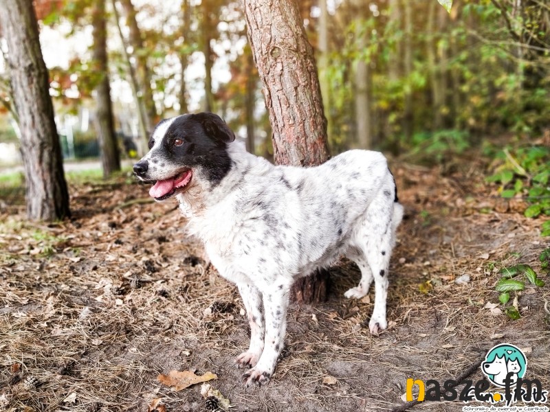 A na koniec naszego dzisiejszego spotkania chciałam Wam przypomnieć o pewnej pięknej biało-czarnej suni. Kropka ma 12 lat i bardzo potrzebuje nowego domu, ponieważ średnio odnajduje się w kojcu, sytuacja się zmienia kiedy w jej okolicy pojawia się człowiek. Wtedy rozkwita w oczach, pomóżmy jej cieszyć się nowa rodziną, wspólnie poszukajmy jej domu. Zachowanie Kropki w ogóle nie jest adekwatne do wieku, ma sporo energii i uwielbia długie spacery. Potrafi chodzić na smyczy, jednak delikatnie się plącze. Jest ciekawa świata, interesuje ją wszystko dookoła. Bardzo domaga się głaskania, często staje na dwóch łapkach i wtula się w człowieka. A skoro jesteśmy już w temacie łapek, to potrafi ją także pięknie podawać. To typowa rodzinna psinka, mega radosna i wesoła. Kiedy jest wśród ludzi, to pyszczek nie przestaje jej się cieszyć. Z psami bywa różnie, aktualnie jest w kojcu z samcem swojej wielkości i super się dogadują, aczkolwiek na spacerze niektóre zaczepia, więc zapoznanie z psem rezydentem będzie najlepszą opcją. Odnajdzie się zarówno w domu z ogrodem, jak i w mieszkaniu, w których otrzyma miłość i swój ciepły kąt.