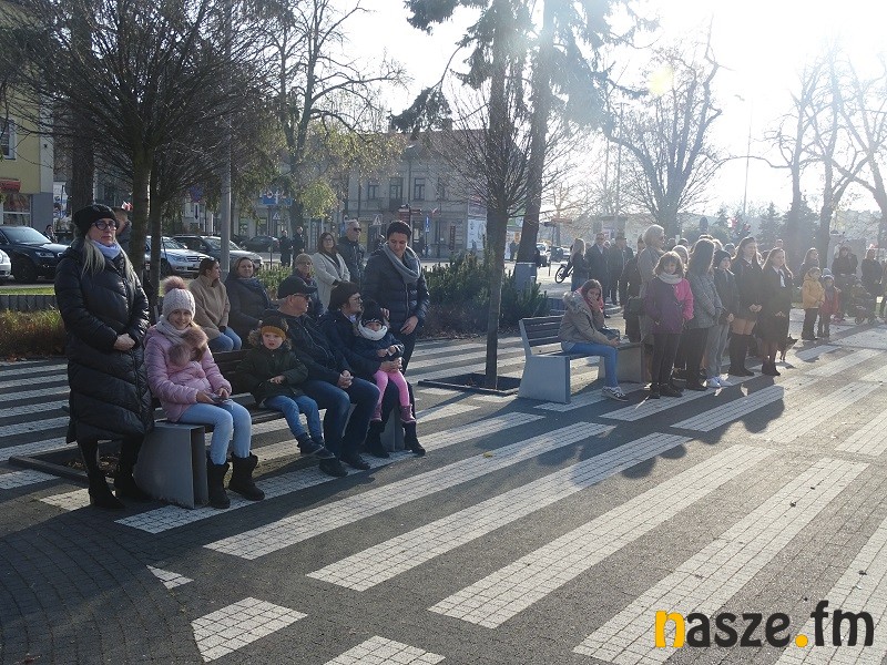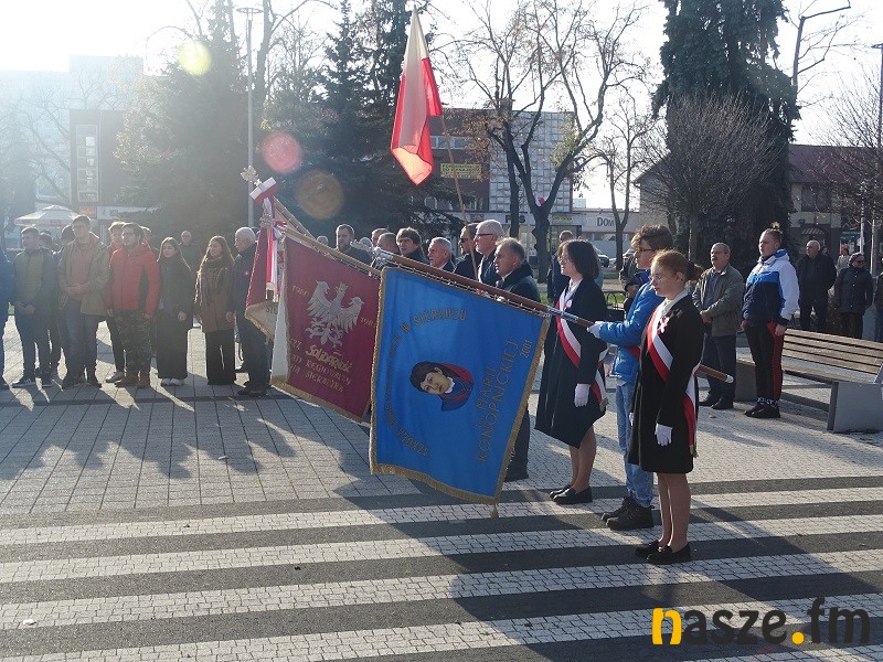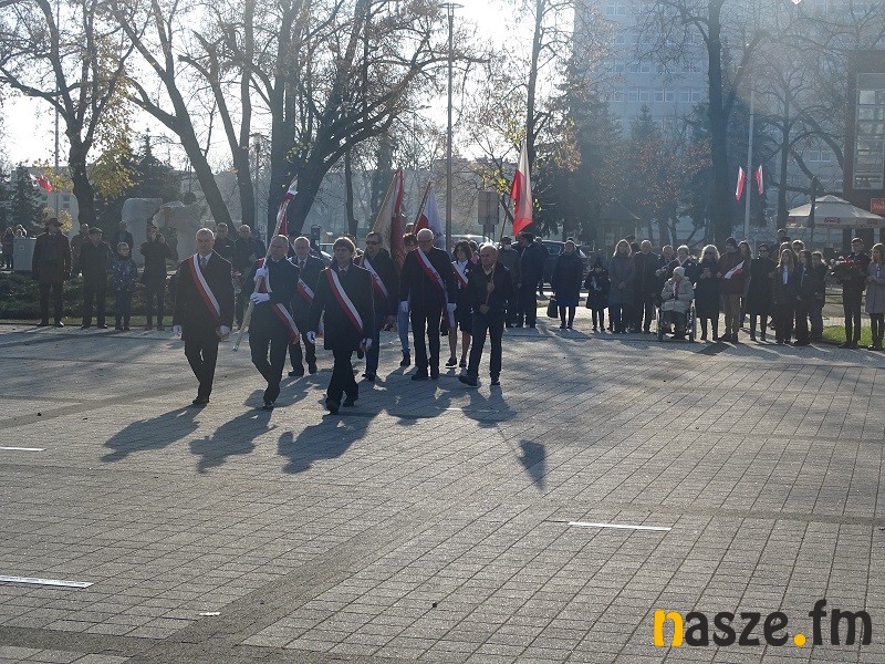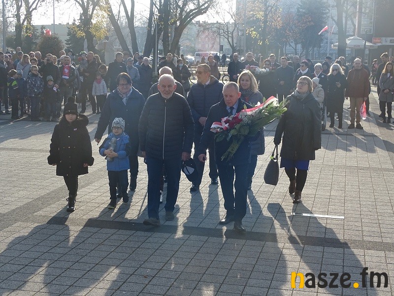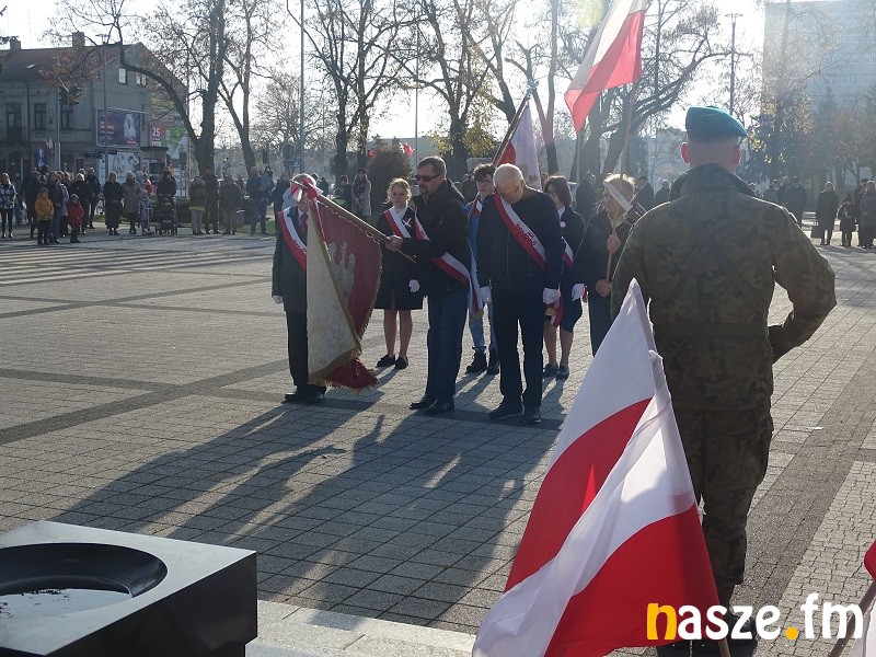 Na plac przy pomniku marszałka Józefa Piłsudskiego przybyło kilka delegacji ze sztandarami, przedstawiciele lokalnych władz samorządowych, ale i sieradzanie, którzy zrobili to nawet całymi rodzinami.