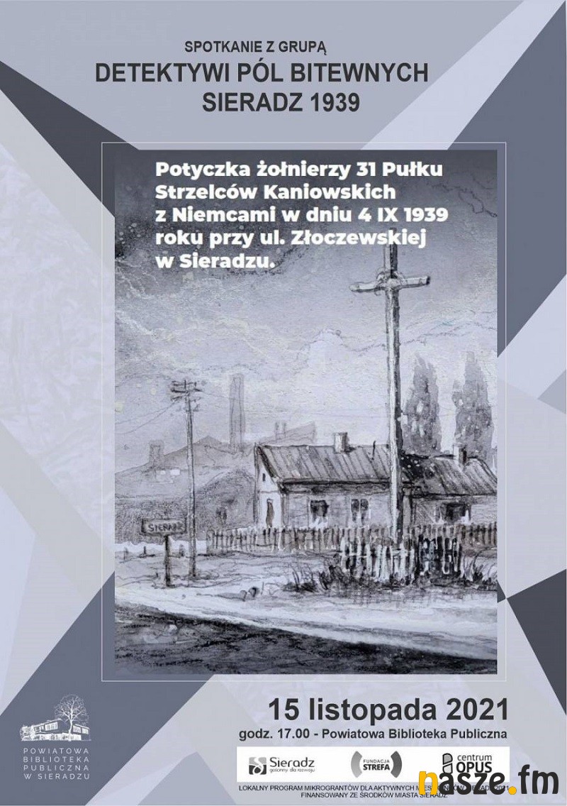 Grupa „Detektywi Pól Bitewnych Sieradz 1939” oraz Urząd Miasta w Sieradzu i Oddział PTTK w Sieradzu zapraszają na spotkanie dotyczące podsumowania projektu pod nazwą "Upamiętnienie pierwszej potyczki żołnierzy 31 Pułku Strzelców Kaniowskich z Sieradza z Niemcami w dniu 4 IX 1939 roku na ówczesnych przedmieściach Sieradza".