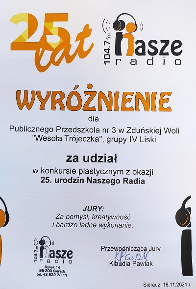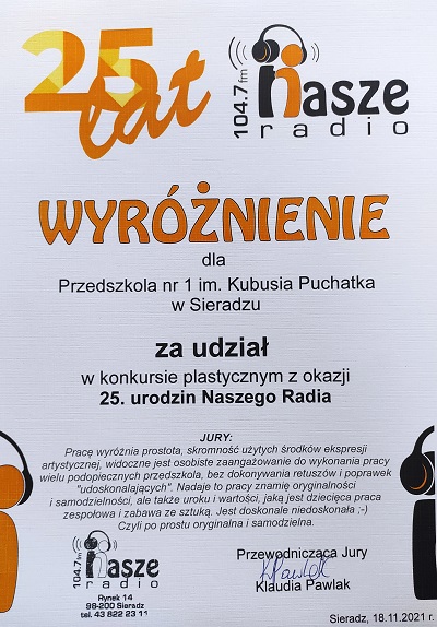 Wyniki konkursu dla przedszkoli z okazji 25. urodzin Naszego Radia