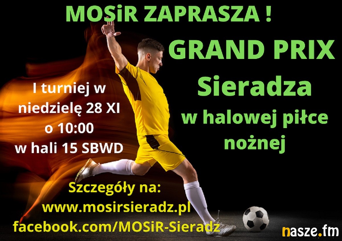Miejski Ośrodek Sportu i Rekreacji w Sieradzu zaprasza na pierwszy turniej z cyklu Grand Prix Sieradza w Halowej Piłce Nożnej. Zgłoszenia potrwają maksymalnie do 24 listopada.