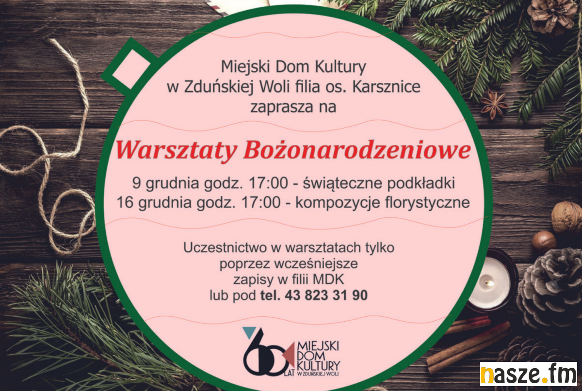 Już powoli czuć zapach zbliżających się Świąt Bożego Narodzenia. Filia Miejskiego Domu Kultury w Zduńskiej Woli zaprasza na warsztaty świąteczne.