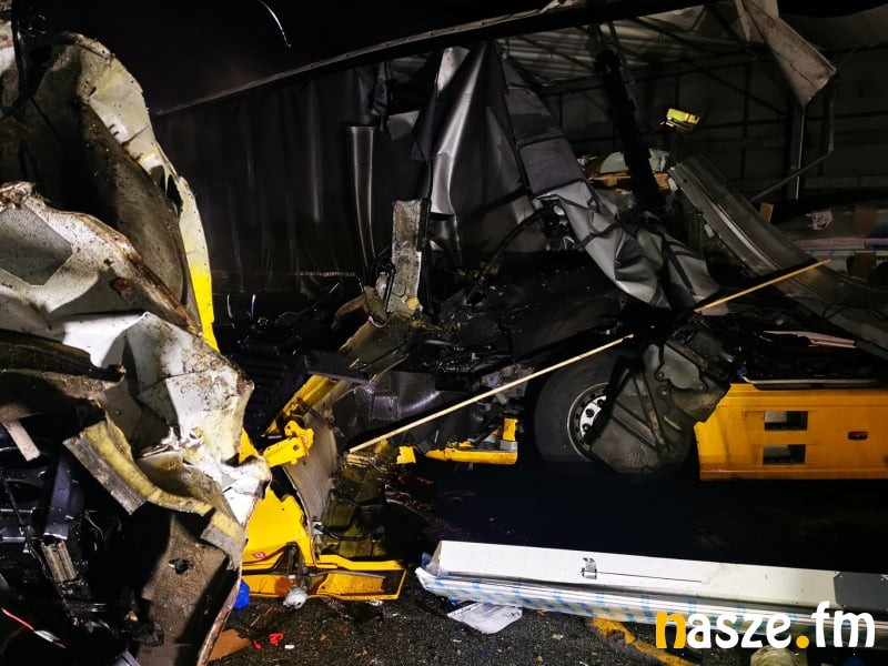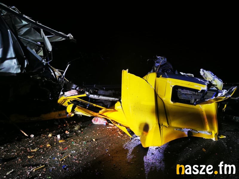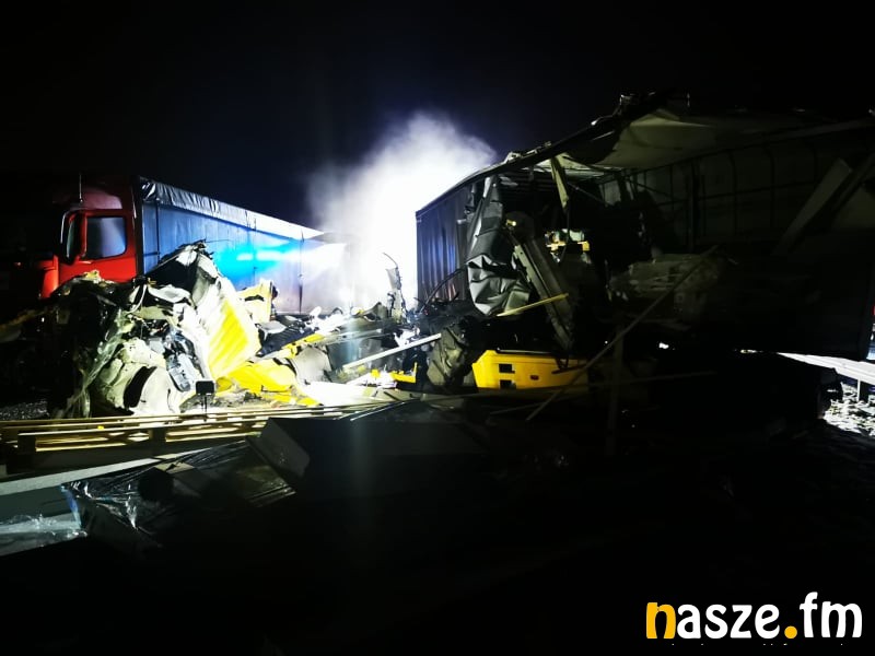 - Jeden z kierowców jadący tirem zauważył, że zapaliła mu się kontrolka od świateł. Zjechał, jak najbardziej mógł, na prawą stronę drogi i wysiadł z pojazdu w celu ustawienia trójkąta ostrzegawczego. Gdy wyszedł z kabiny, w tym czasie nadjeżdżający drugi tir, podczas omijania zaparkowanego pojazdu, uderzył w tył naczepy. Obaj kierowcy byli trzeźwi - informuje st. sierż. Katarzyna Biniaszczyk.