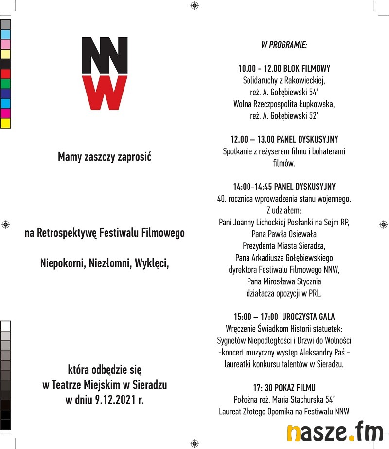 W imieniu prezydenta miasta Sieradza oraz organizatorów Festiwalu Niepokorni Niezłomni Wyklęci zapraszamy na jego Retrospektywę, która odbędzie się w Sieradzu 09.12.2021 roku. Tym razem mottem przewodnim festiwalu jest 40. rocznica stanu wojennego.