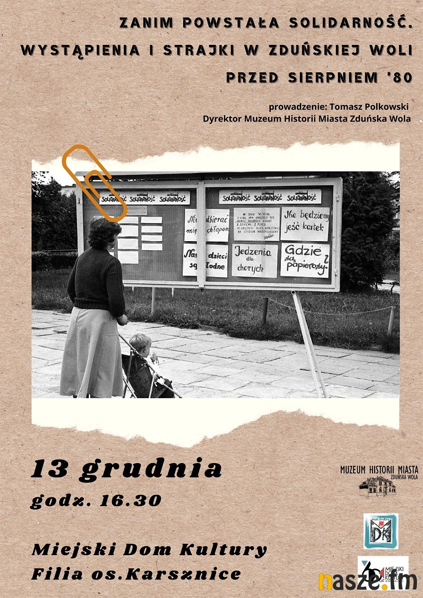 - Serdecznie zapraszam, tym bardziej, że jest to mój autorski wykład. Przygotowałem go na podstawie materiałów, które znalazłem podczas pobytu w łódzkim oddziale Instytutu Pamięci Narodowej. Ten wykład będzie dotyczył stricte Karsznic, natomiast nie będzie dotyczył samego stanu wojennego, tylko okresu przed powstaniem „Solidarności&rdquo, przed strajkami sierpniowymi z 1980 roku. Dotarłem do sprawozdań, raportów miejscowej komórki Służby Bezpieczeństwa, która działała w Karsznicach, dotyczące niepokojów, gróźb strajku kolejarzy z karsznickiego węzła. Jakie były tego przyczyny? To właśnie chcę przedstawić podczas wykładu - zaznacza Tomasz Polkowski, dyrektor Muzeum Historii Miasta Zduńska Wola.