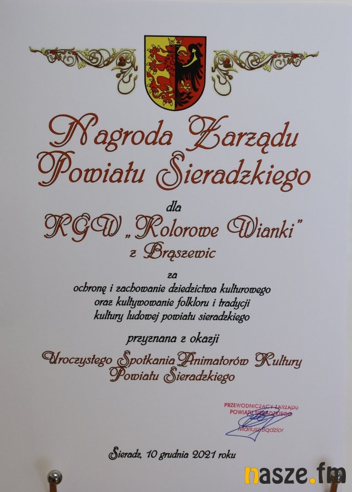 Władze samorządowe Powiatu Sieradzkiego nagrodziły lokalnych animatorów kultury. Niestety ze względu na rosnącą liczbę zachorowań na Covid 19, w bieżącym roku nie odbędzie się uroczyste spotkanie animatorów i pracowników kultury.