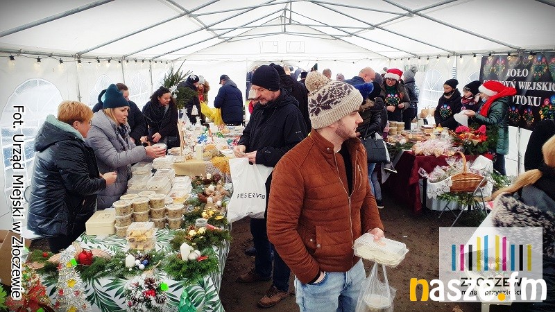 Nikt szczególnie nie zwracał uwagi na pogodę. Za to odwiedzający stoiska mogli wybierać i przebierać m.in. w słodkościach, ozdobach choinkowych, świecach, czy świątecznych potrawach. Można było kupić ryby, wędliny i choinki. Czas umilał występ Kapeli Podwórkowej Złoczewianie oraz solistów z MOK. Organizatorzy zapraszają na kolejny taki jarmark już za rok.