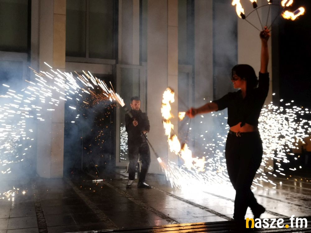 Czterech artystów Fundacji "Sztukmistrze" z Lublina rozgrzało zduńskowolską publiczność swoim zadziwiającym fireshow.