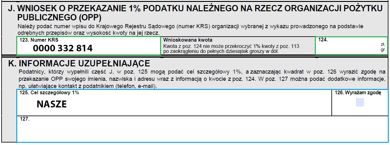 Wystarczy podczas wypełniania rocznego rozliczenia PIT, podać nr KRS 0000 332 814 oraz cel szczegółowy NASZE.