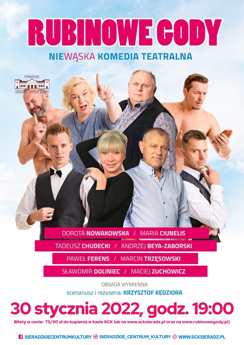W niedzielę w Teatrze Miejskim w Sieradzu będzie można obejrzeć spektakl komediowy o małżeństwie z 40letnim stażem, które "Rubinowe gody" postanawia uczcić inaczej niż wcześniejsze rocznice.