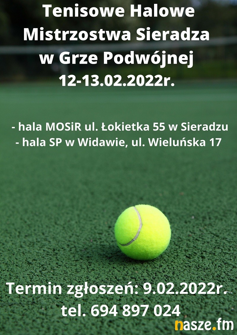 Miejski Ośrodek Sportu i Rekreacji w Sieradzu oraz Sieradzki Klub Tenisowy zapraszają na Halowe Mistrzostwa Sieradza w tenisie ziemnym w grze podwójnej. Zawody odbędą się w dniach 12-13 lutego.