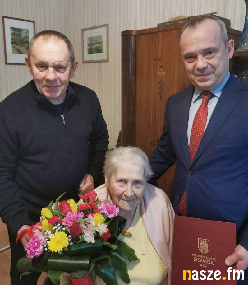 Szacowną jubilatkę odwiedzili Rafał Matysiak, wiceprezydent Sieradza oraz Mirosław Antoni Owczarek, radny miejski. - W imieniu sieradzan złożyliśmy pani Halinie najlepsze życzenia - mówi wiceprezydent.