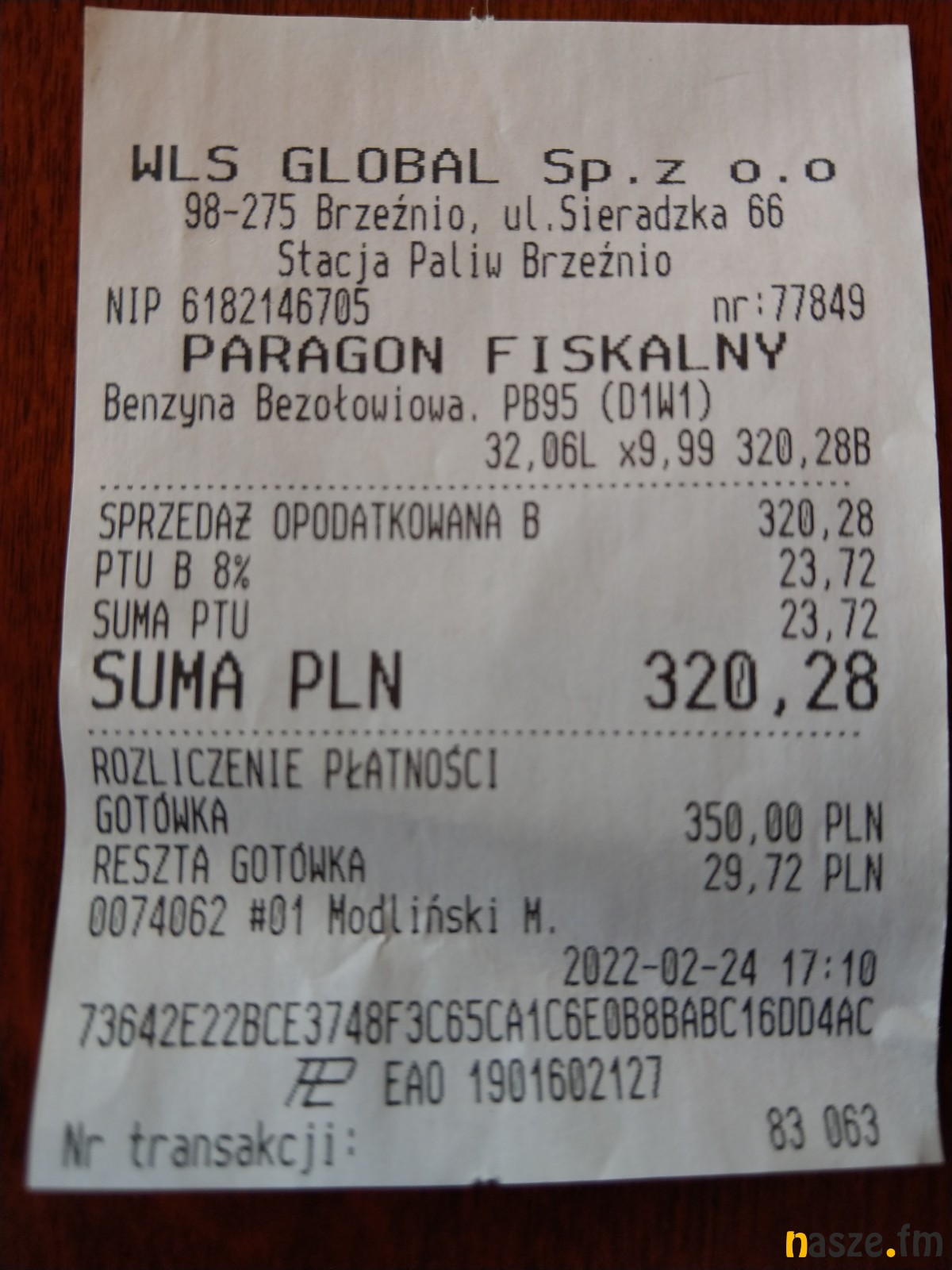 W związku ze wzrostem sprzedaży na naszych stacjach informujemy, że dostawy paliw są w pełni zabezpieczone i wszyscy nasi klienci będą obsłużeni. Dotyczy to rynku hurtowego i detalicznego. Apelujemy również o dokładne weryfikowanie źródeł informacji dotyczących dostępności paliwNa niektórych stacjach paliw w regionie cena za litr benzyny wynosiła wczoraj nawet 9,99 za litr. Tak było m.in. w Brzeźniu czy w Zapolicach: